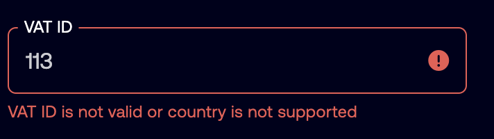 If you receive the following error message when trying to fill out your VAT ID: